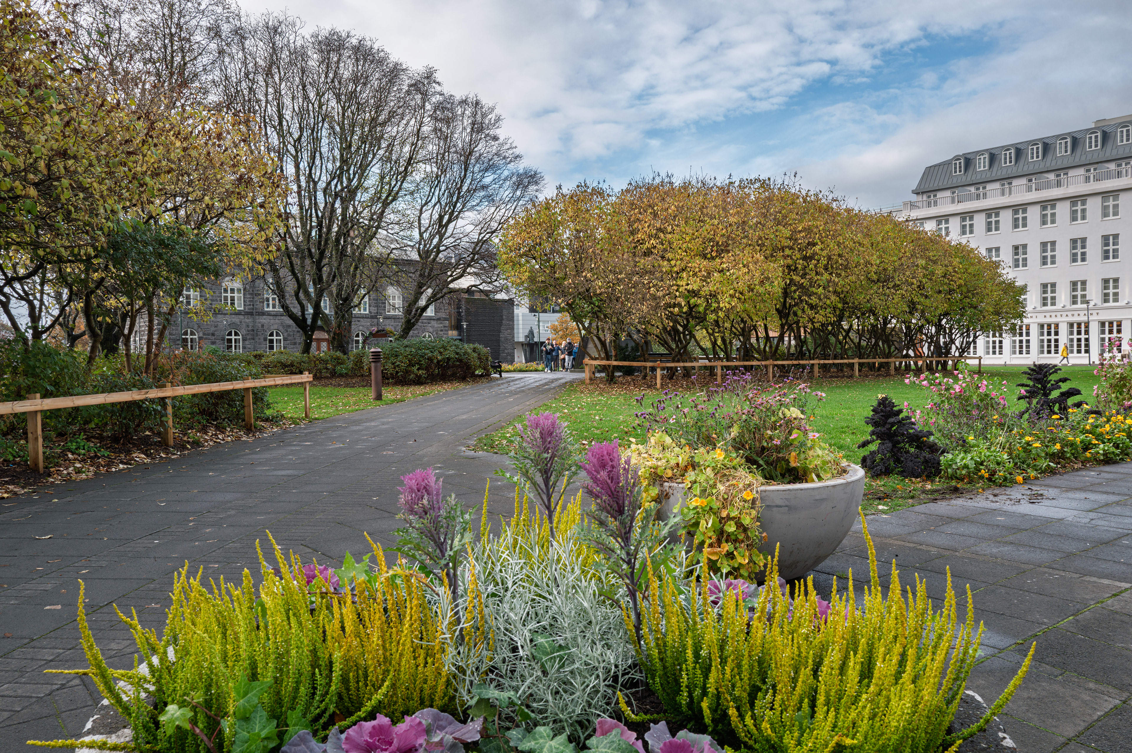 Skólavörðustígur is a street that rises from Laugavegur to Hallgrímskirkja, featuring a high concentration of Icelandic design boutiques, galleries, and cafés within a few lively blocks. It is arguably the most photogenic shopping street in the city. The name of the street refers to the old "school cairn" located on Skólavörðuholt, the hill that the street ascends. This route was established as Reykjavík began to expand uphill in the early 20th century. At the intersection of Skólavörðustígur and Laugavegur, you'll find a vibrant rainbow painted on the road. Initially created as part of Reykjavík Gay Pride, this lively design has become a permanent symbol of inclusivity, serving as both an urban welcome mat and a popular attraction for visitors and locals alike.
